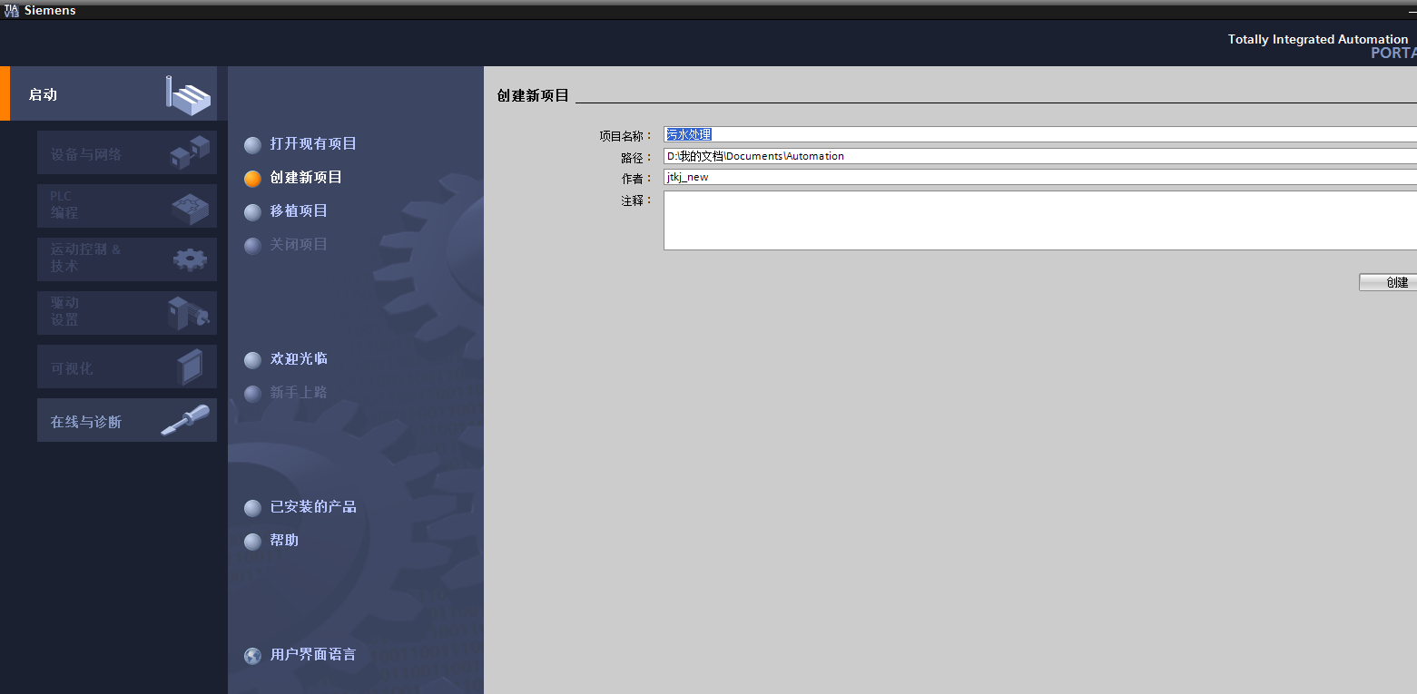 進入TIA Portal主界面,創(chuàng)建一個工程應用: