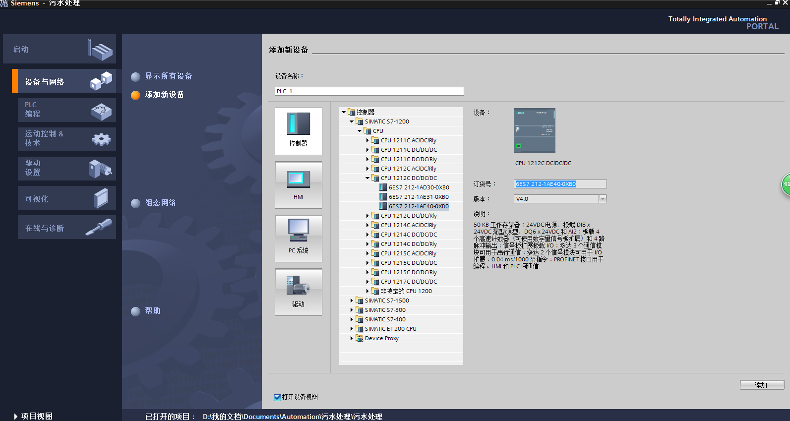 選擇 “6ES7 212-1AE40-0XB0”,版本V40。