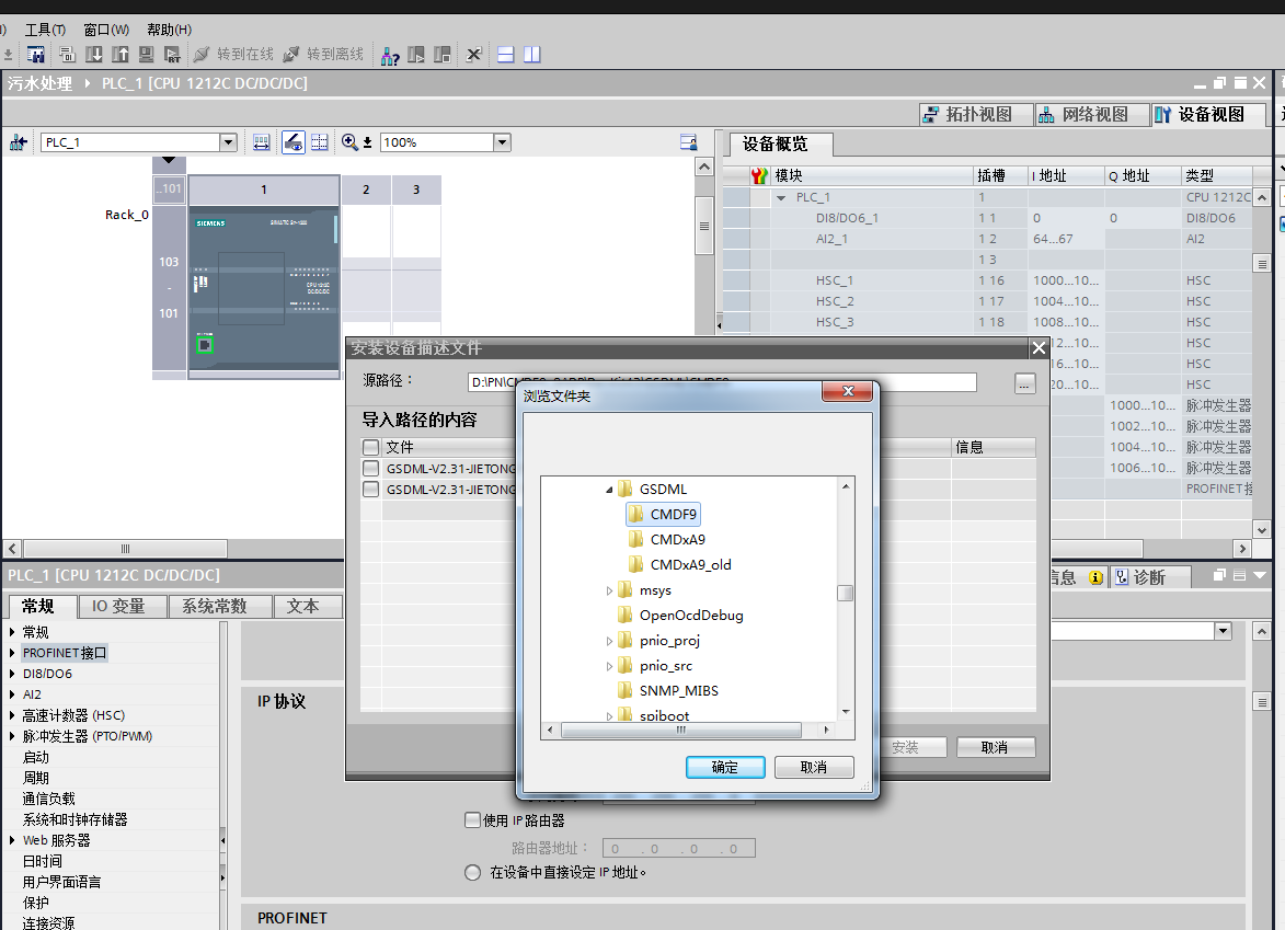選擇存放GSDML的文件夾導入文件,將安裝所要用到的CMDF9系列模塊GSDM文件。