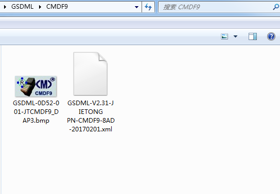 安裝GSDML文件時存放該文件的文件夾內必須有設備GSDML文件和用于標識該設備的BMP圖形文件,見下圖: