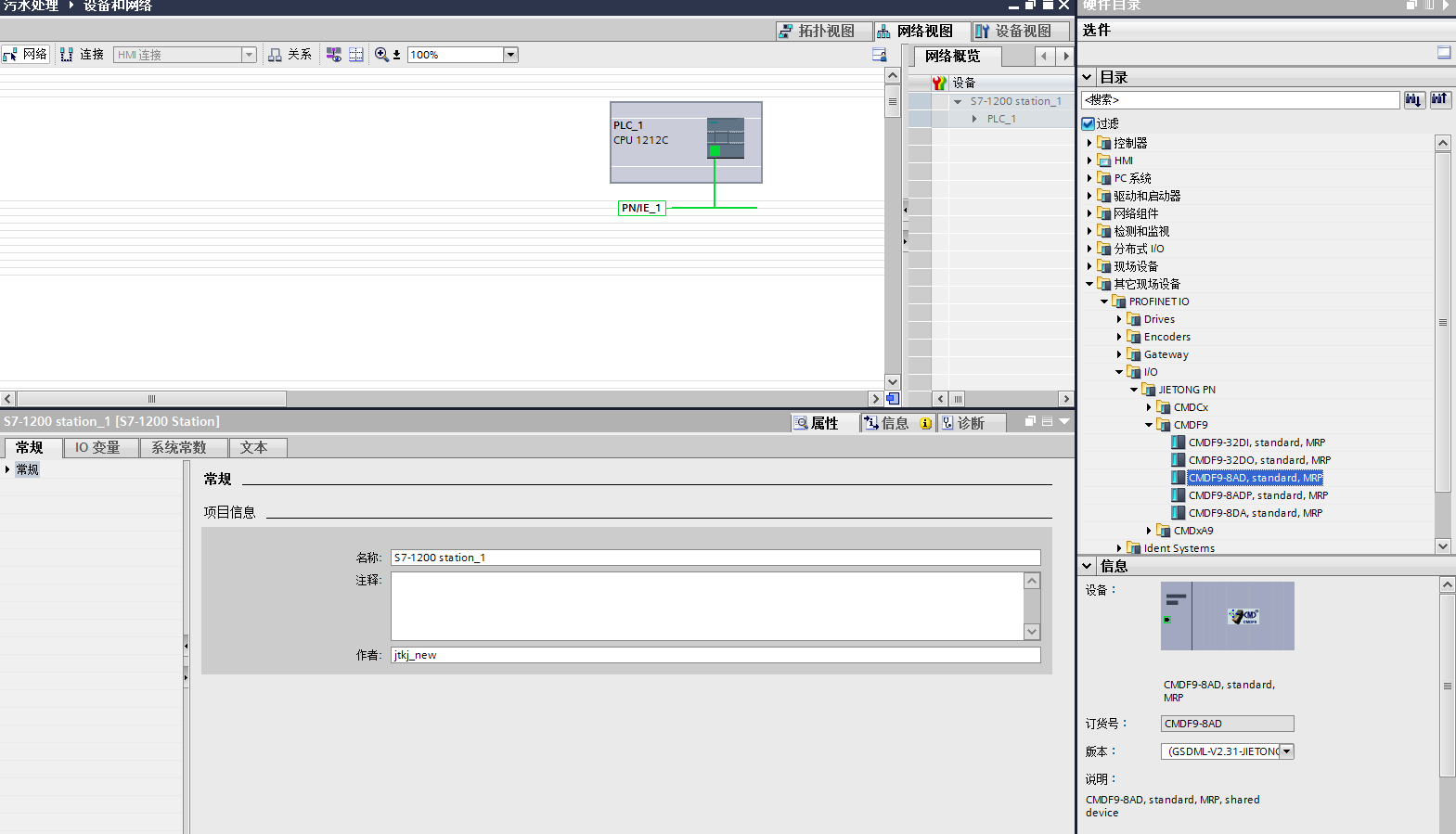 簡單使用自動生成PROFINET設備名稱,本例為CMDF9-8AD。如有更多的同類設備,會自動生成下劃線序列CMDF9-8AD_1……。