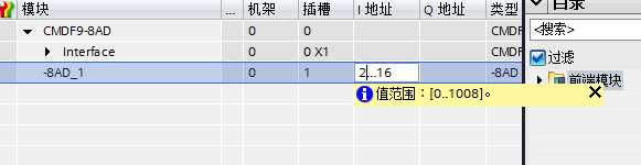 在I/O欄目里找到我們剛剛安裝JIETONG PN下的CMDF9中的CMDF9-8AD模塊。