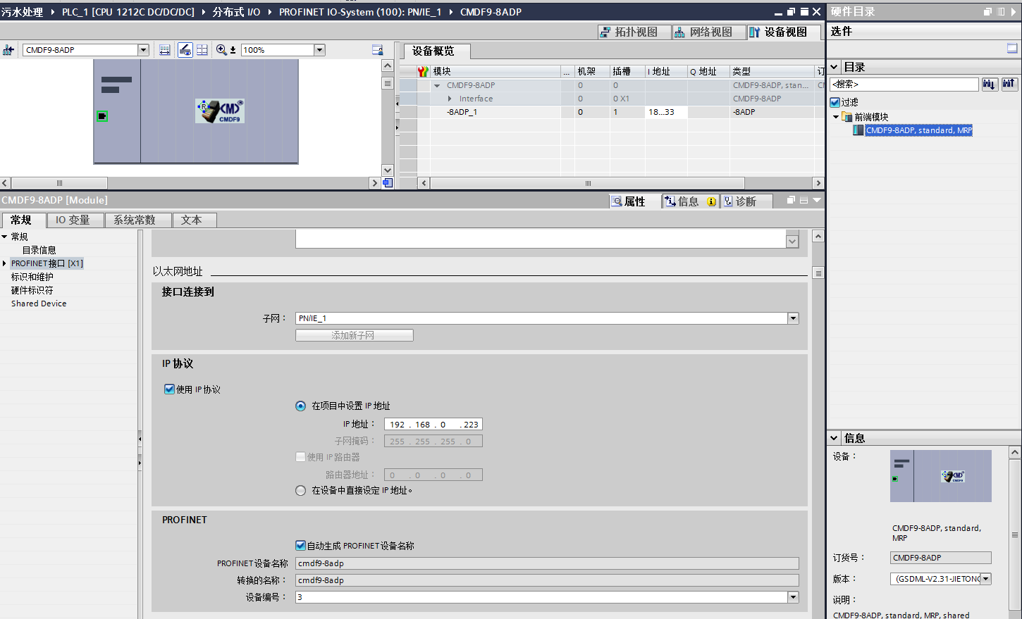 和前面一樣,添加CMDF9-8ADP到網絡中,分配好IP地址和設備名稱: